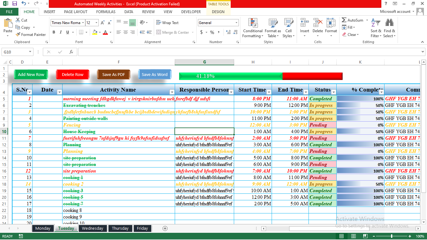 The Weekly Tracking Activity Template is an automated Excel tool. It helps you plan and track weekly tasks with ease.